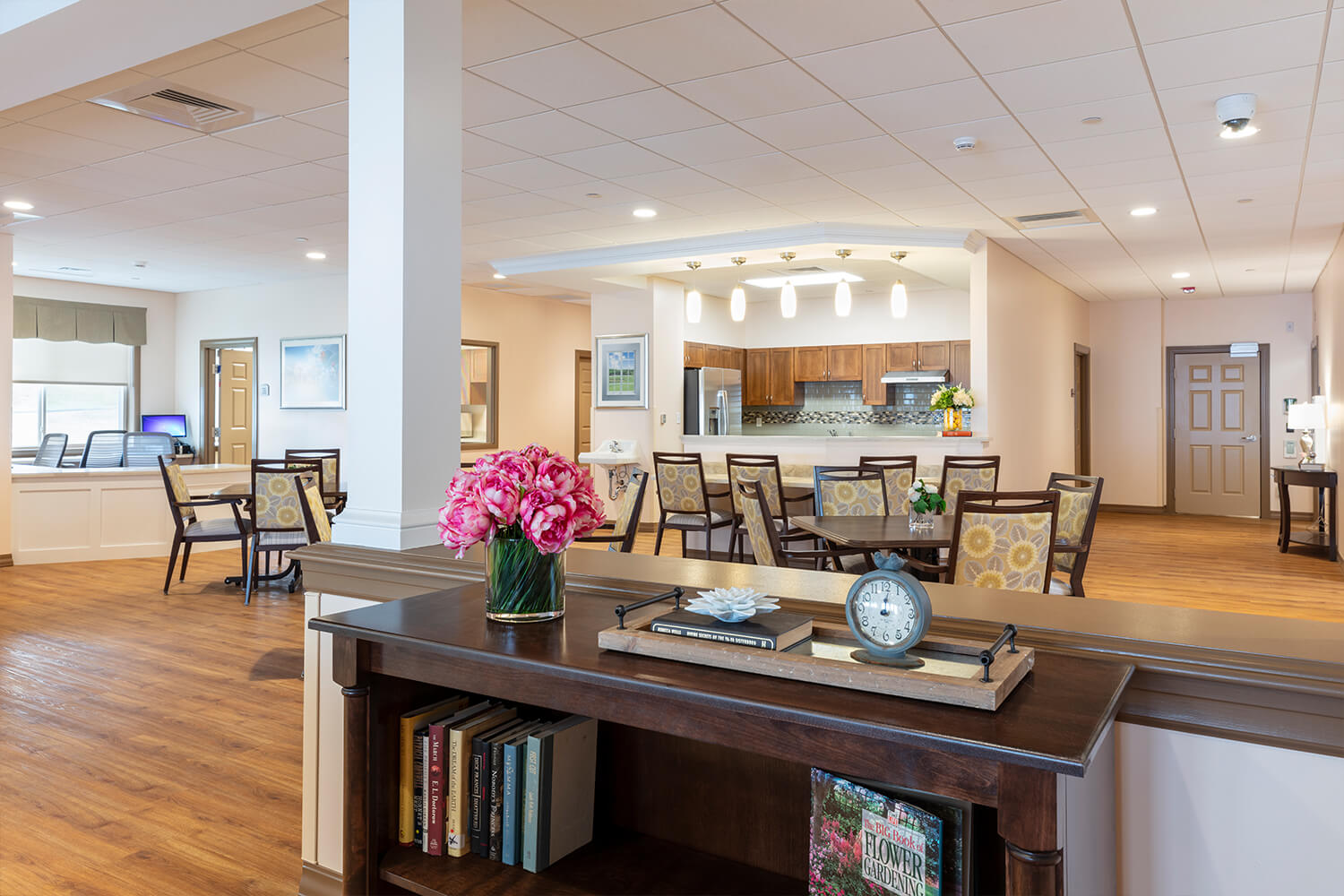 The Evergreens at Briarwood is a beautiful, safe, and secure 12-resident home for seniors with memory loss. Each person has a private apartment and bathroom that is furnished with their own belongings. The community spaces are open, allowing most people to navigate without assistance, within our secured memory care assisted living neighborhood.